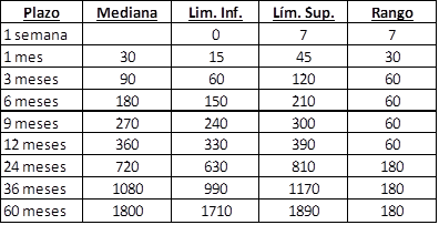 Para el cálculo, a la totalidad de las observaciones recibidas y agrupadas por plazo, se les aplica un truncamiento a 2 desviaciones estándar.